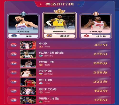本次NBA30大球星具体排名如下: