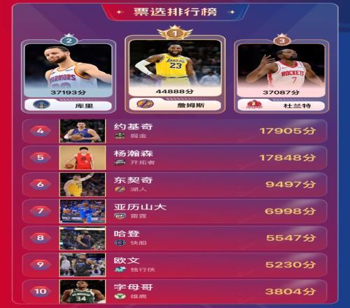 实至名归!NBA新赛季30大球星雷速人气王勒布朗詹姆斯