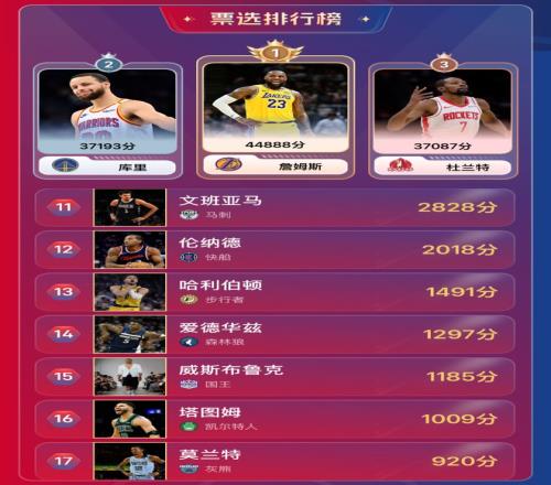 本次活动,通过第一阶段无限PK模式决出胜率前五十位球星,再由第二阶段的票选方式选出老哥们最喜欢的30位球星,最终分数最多的球星,当选NBA新赛季30大球星雷速人气王。