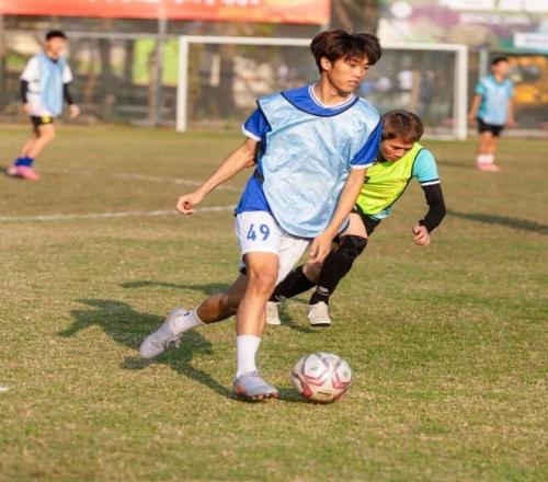 选拔赛中,有一名身穿黄色球衣的小伙子球技显得格外突出,明显高出其他人一截。他就是曾经入选过U18国家男子足球队选拔训练营的何文。